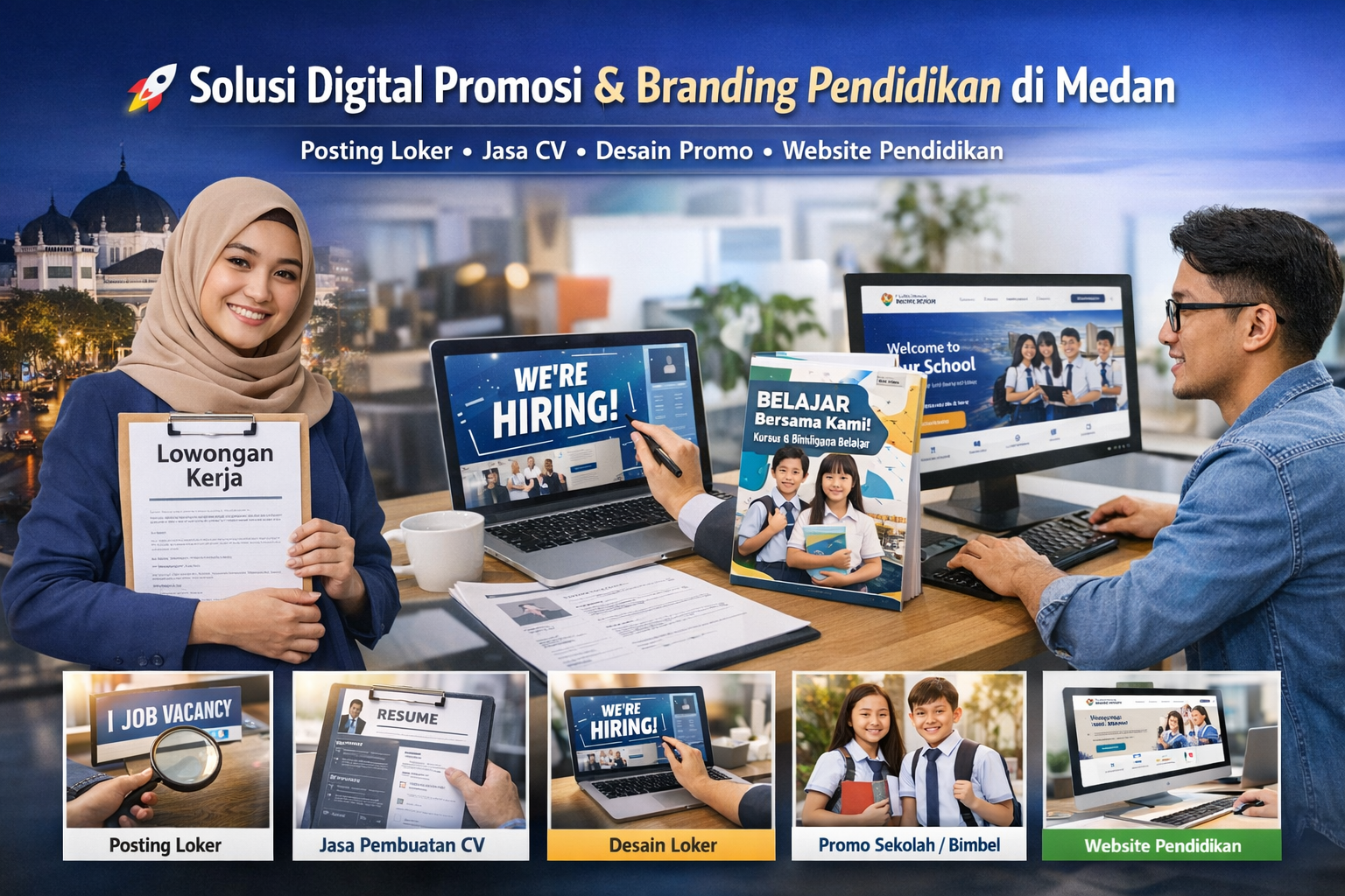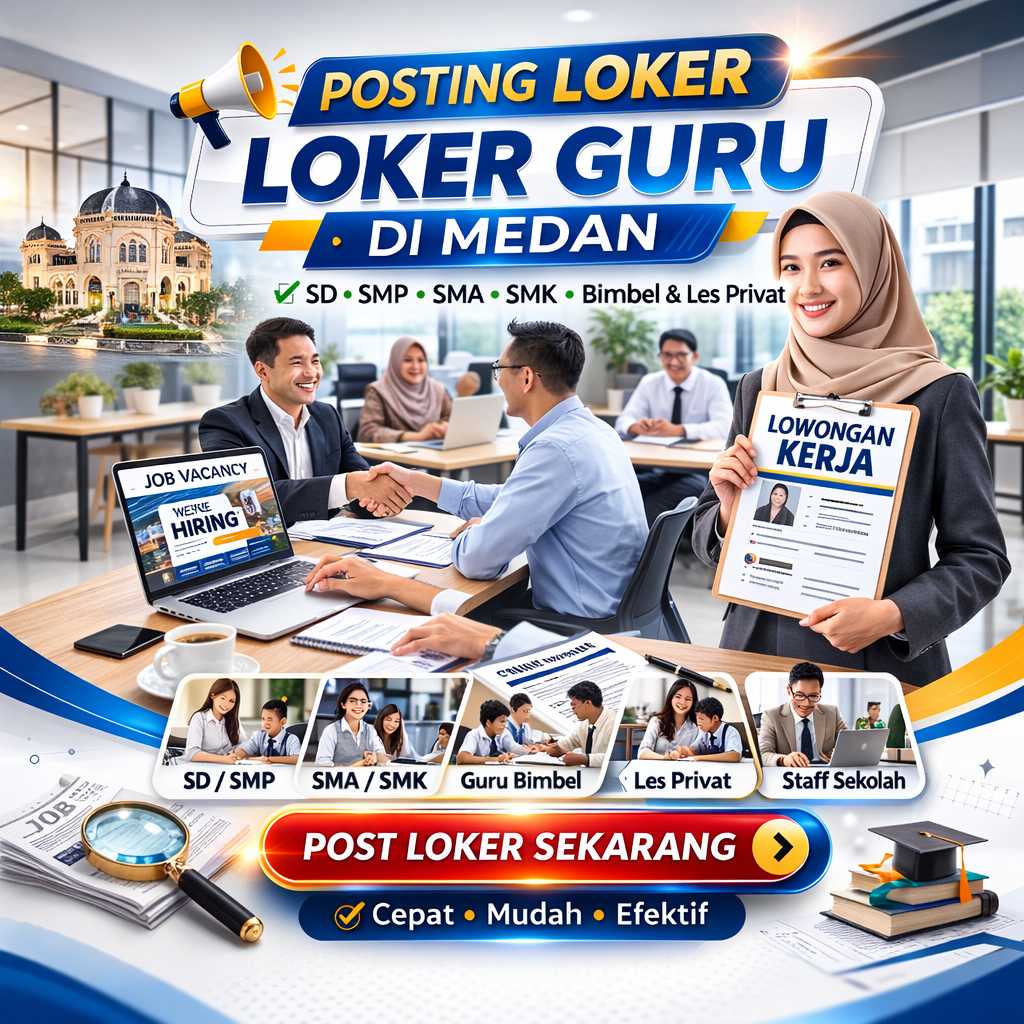 🚀 Solusi lengkap kebutuhan digital pendidikan di Medan! Mulai dari Posting Loker Guru, Jasa CV ATS & Kreatif, Desain Loker & Promo Sekolah/Bimbel/Les Privat, hingga Pembuatan Website Pendidikan SEO Ready. Tingkatkan branding & jangkauan Anda sekarang. Konsultasi mudah, hasil profesional. Order sekarang!