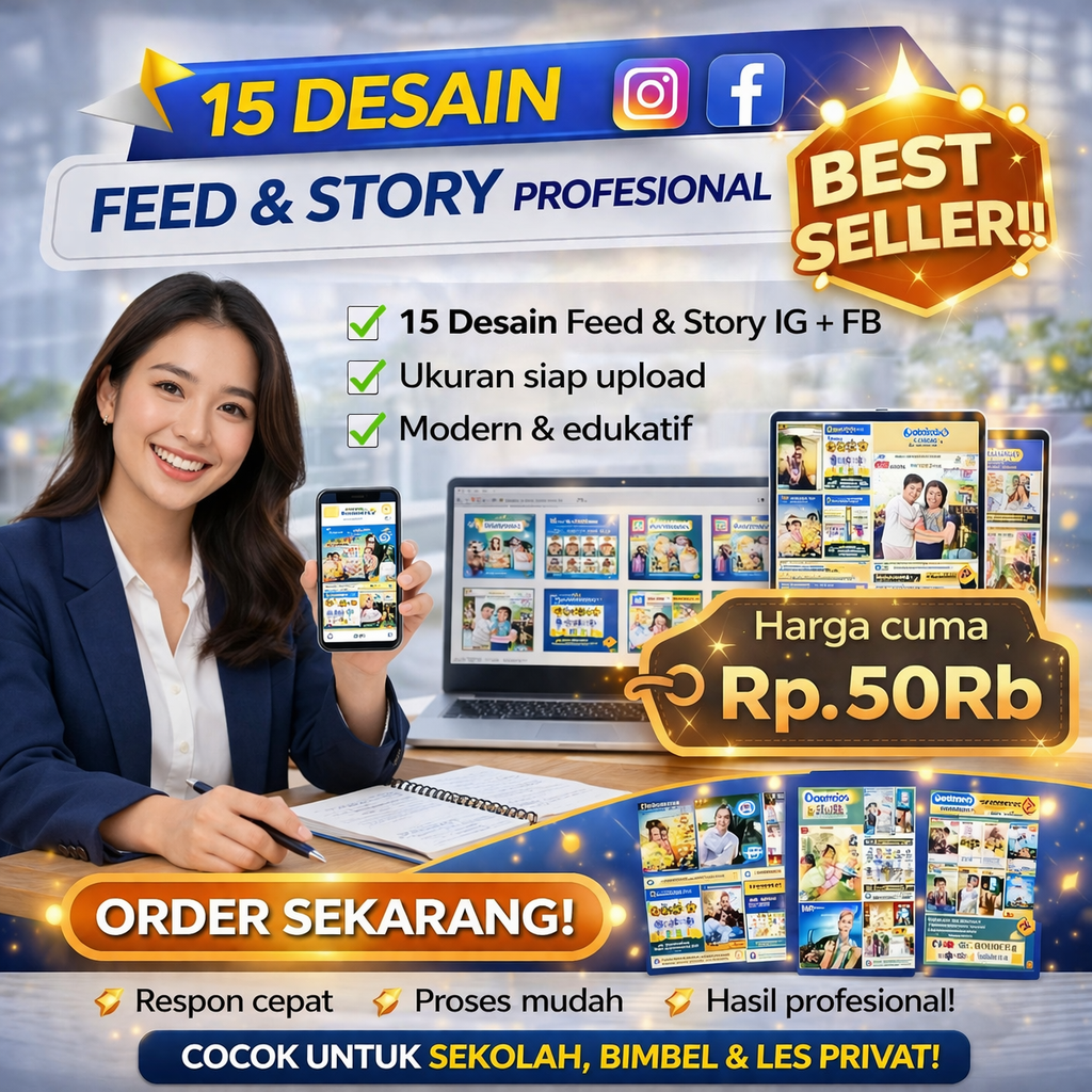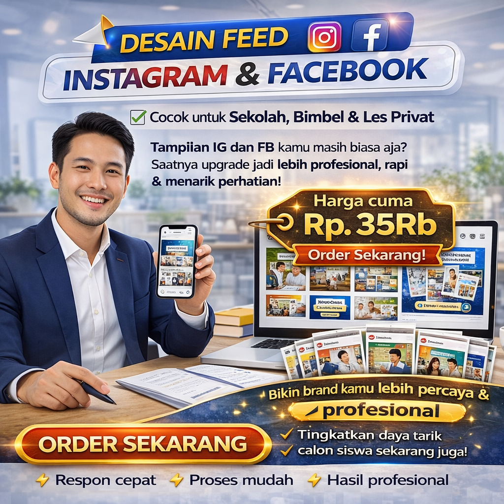 Tingkatkan Jumlah Siswa dan Kepercayaan Orang Tua dengan Desain Feed & Story Profesional untuk Sekolah, Bimbel, dan Les Privat yang Lebih Menarik, Konsisten, Siap Upload, dan Siap Bersaing di Era Digital!